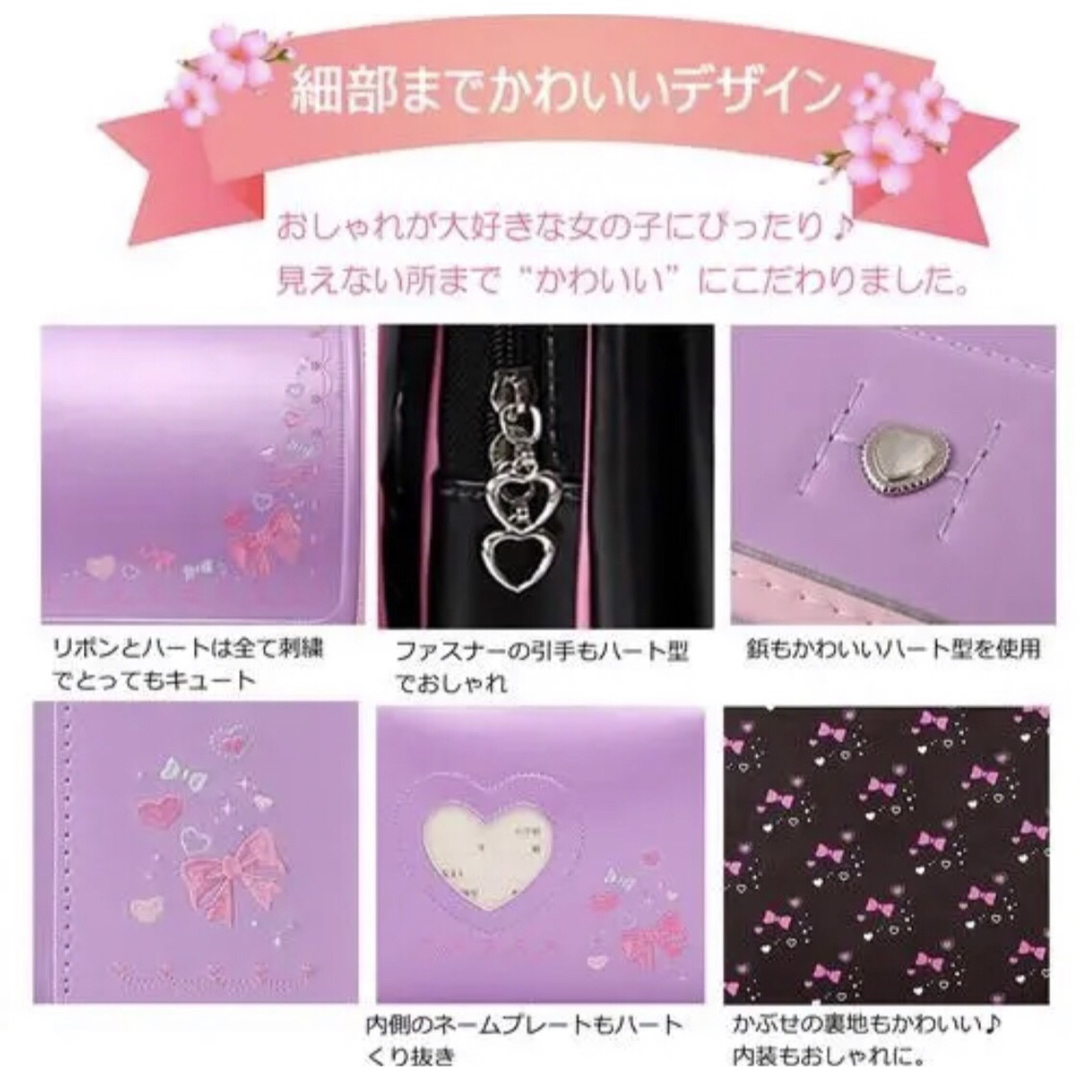 ランドセル 6年保証 おまけ付き プリンセス&刺繍 女の子 パープル。