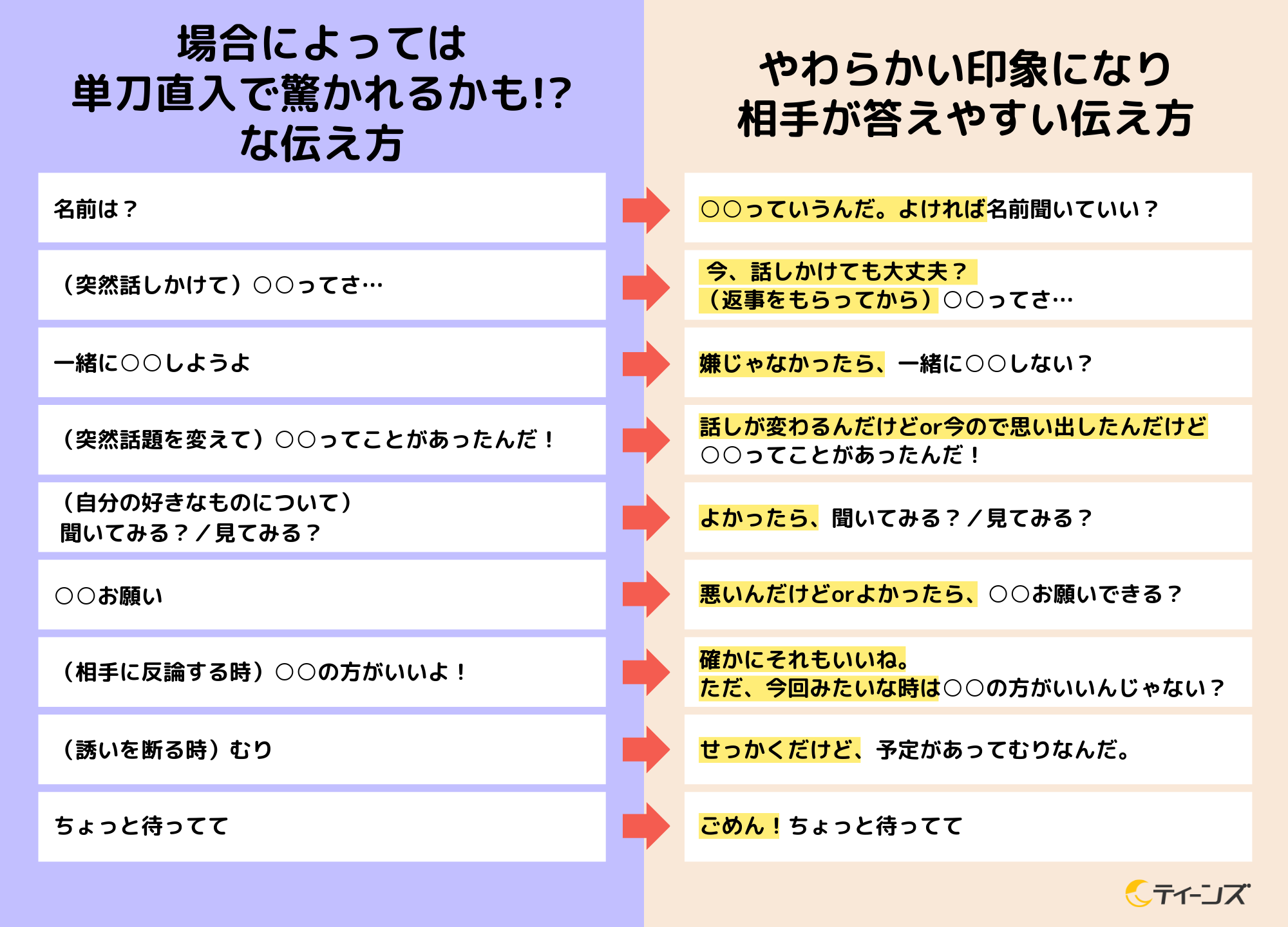 図表でわかる! やわらかい印象になり相手が答えやすい伝え方「ダメ!」じゃなくて:図表でわかる! 発達障害 - ティーンズ。