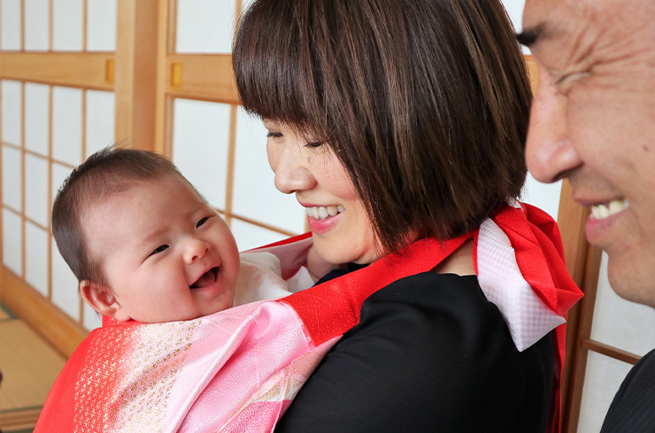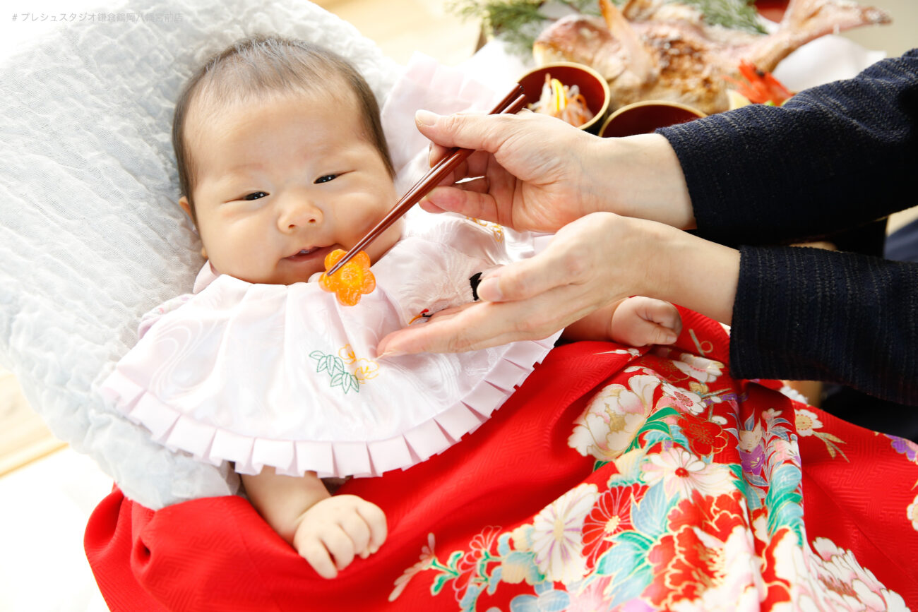 お宮参りと百日祝い・お食い初めは一緒に祝える?同時に写真撮影&お祝いをするときのポイント 貸切型写真館プレシュスタジオ。