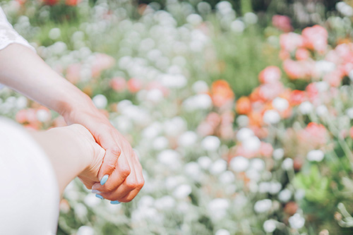 エモすぎる花畑×手繋ぎのフリー画像おしゃれ・かわいい無料写真素材:GIRLY DROP。