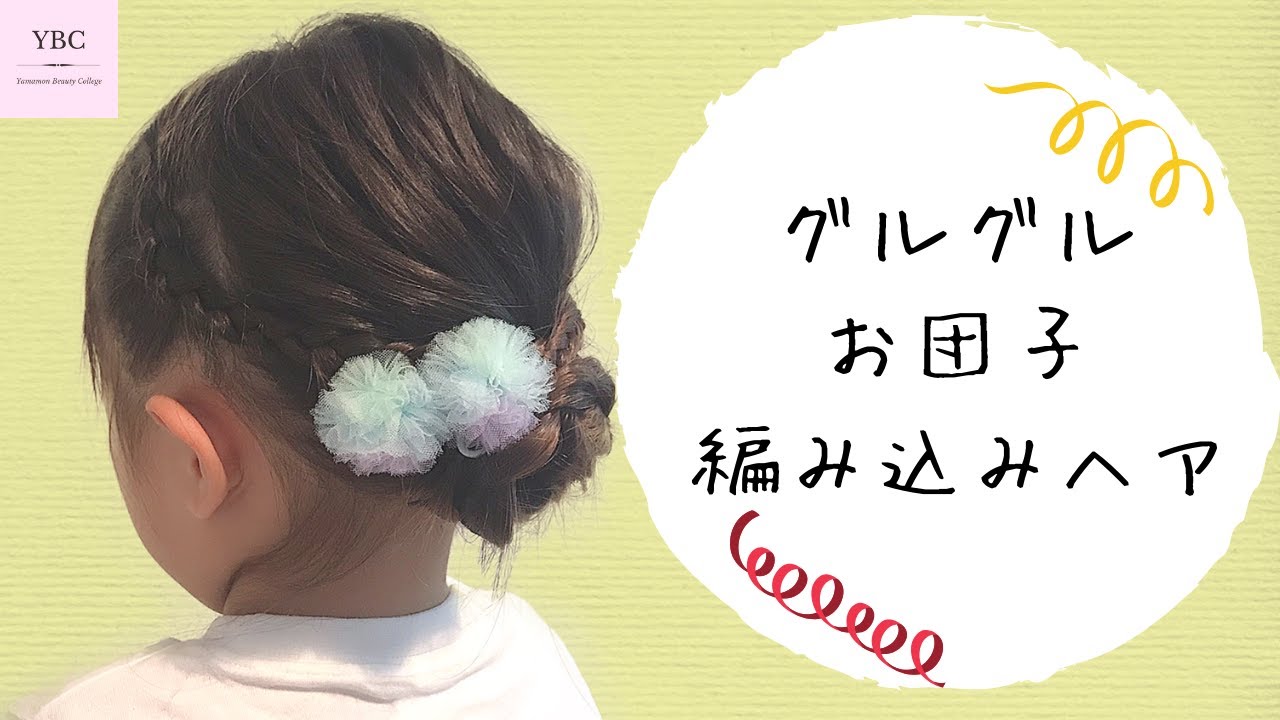 キッズヘアアレンジ 浴衣ヘア イベントヘア グルグル編み込みお団子ヘア Hair arrangement 头发安排 การจัดเรียงผม 헤어어레인지。
