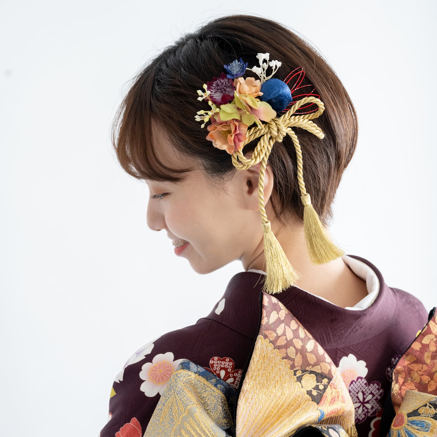 2024年人気NO.1 ボブ・ショートボブ髪飾りD ドライフラワー風ヘッドドレス&組紐 成人式振袖・前撮り・卒業式袴 - 和装髪飾り soie forhair 成人式振袖・卒業式袴・七五三・和装前撮り・結婚式白無垢・色打掛のヘッドドレス専門店 クラフト作品 通販サイト つなぐ。