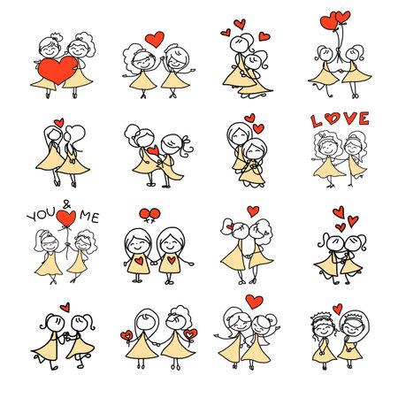 手描きの漫画コンセプト幸せ同じセックス カップル結婚式のイラスト素材・ベクター Image 29650248。