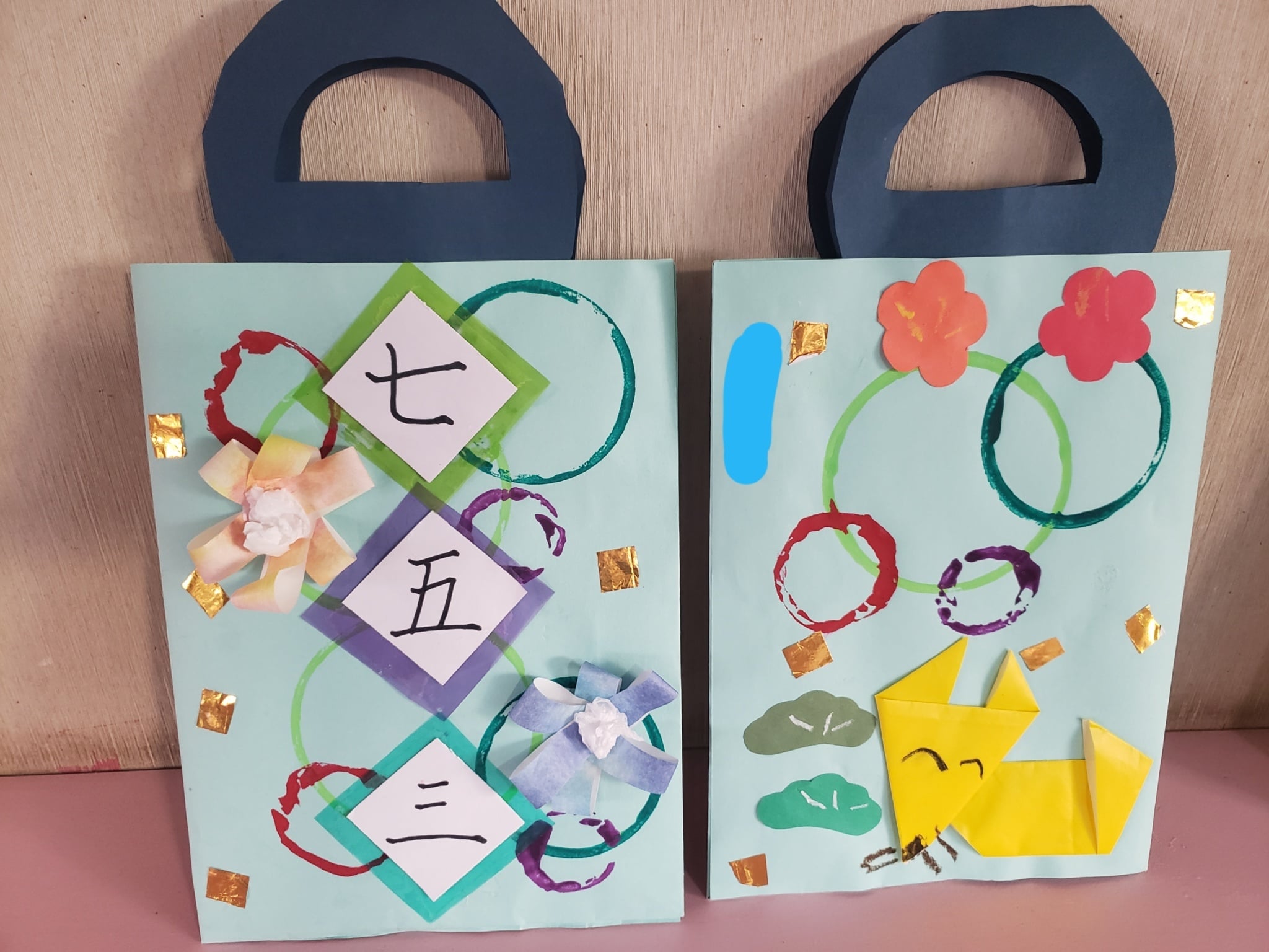 絵画制作活動 七五三 千歳飴袋制作年中組石神井南幼稚園。