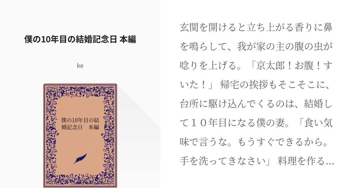 1 僕の10年目の結婚記念日 本編僕の10年目の結婚記念日 - keの小説シリーズ - pixiv。