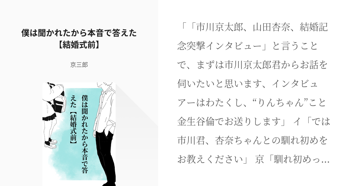 僕ヤバ市川京太郎 僕は聞かれたから本音で答えた 結婚式前- 京三郎の小説 - pixiv。