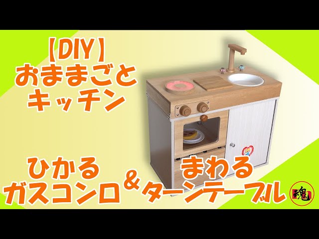 おままごとキッチンDIY光るガスコンロ&まわるターンテーブル ブザー付きLike burning gas stove, spinningturntable, playhouse kitchen。