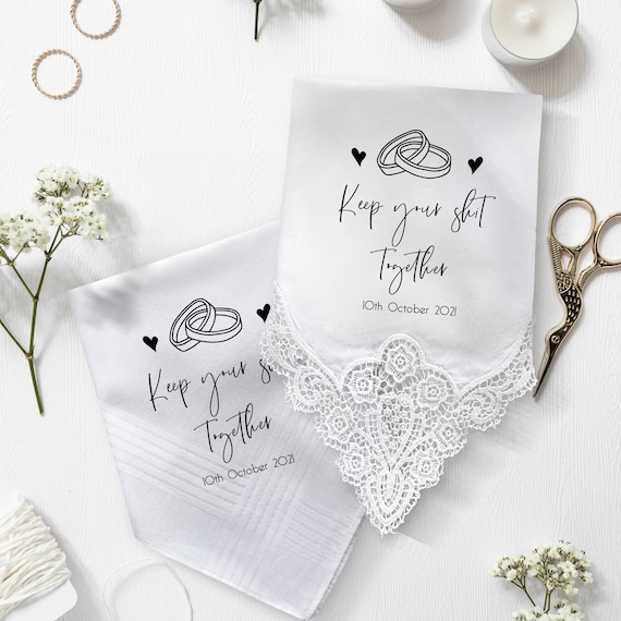 花嫁と花婿のためのハンカチ - 刺繍とハンカチ GRIS ET BLANC。