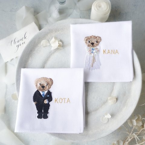 花嫁ハンカチセット ノア お名前刺繍<メール便可> 刺しゅう入り ウェディングドレス工房てくまりんぼ。