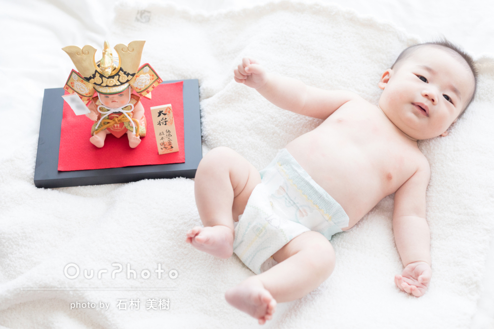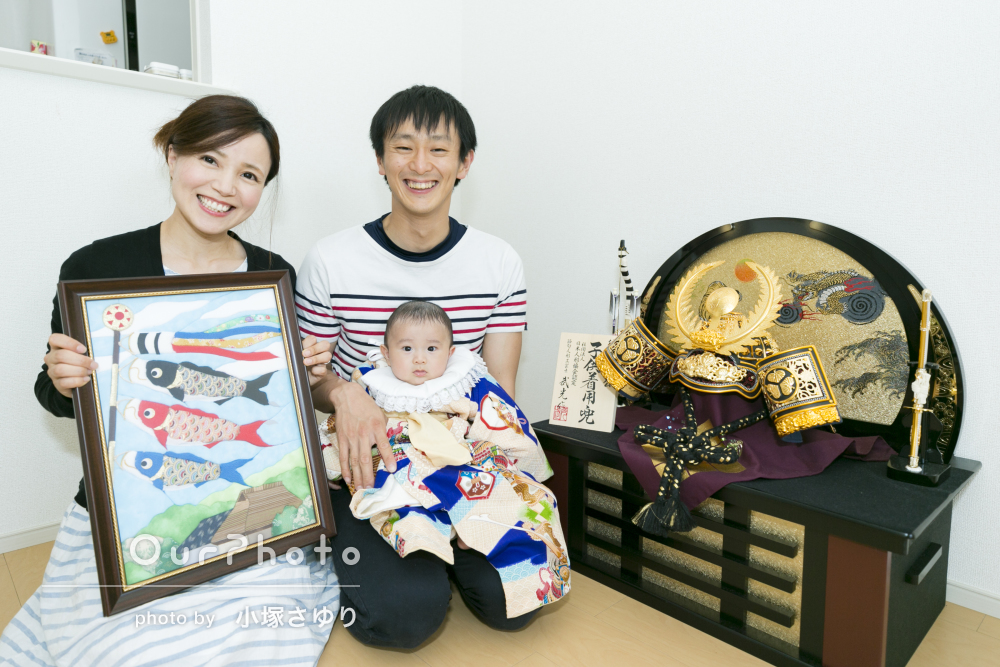 撮影同行レポート vol.39 兜飾りと一緒に端午の節句のお祝い!初節句の家族写真の撮影に同行OurPhoto アワーフォト。