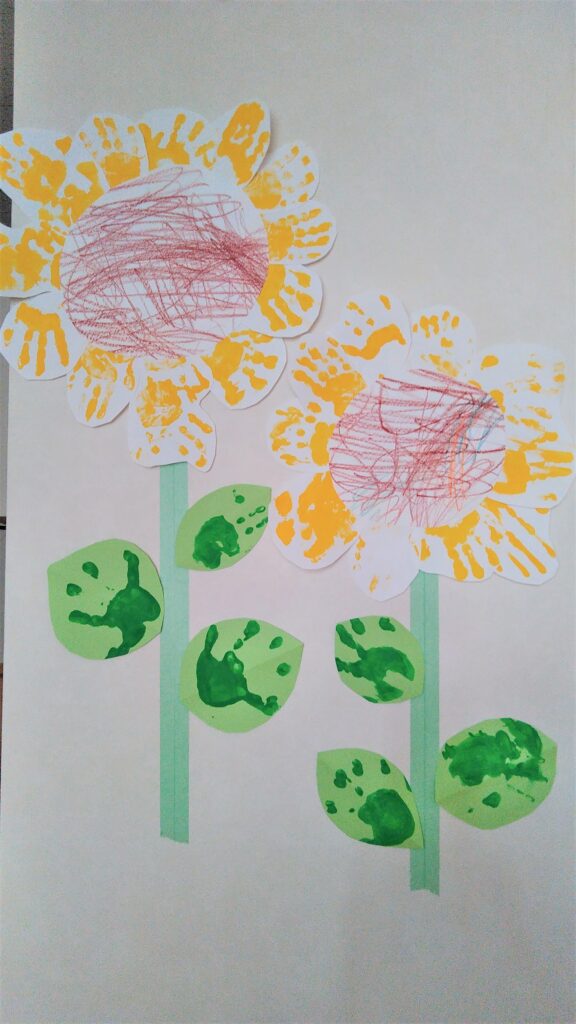 制作~手形やトイレットペーパーの芯を使い、ひまわりを作ろう~24時間託児所 ユーカリハウス。